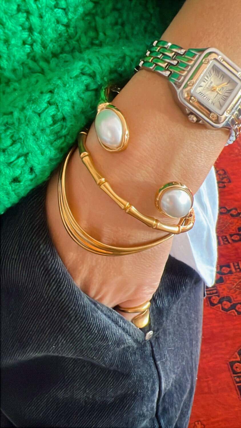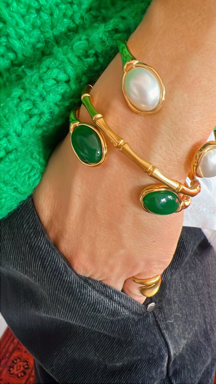Green pearl | stainless bracelet