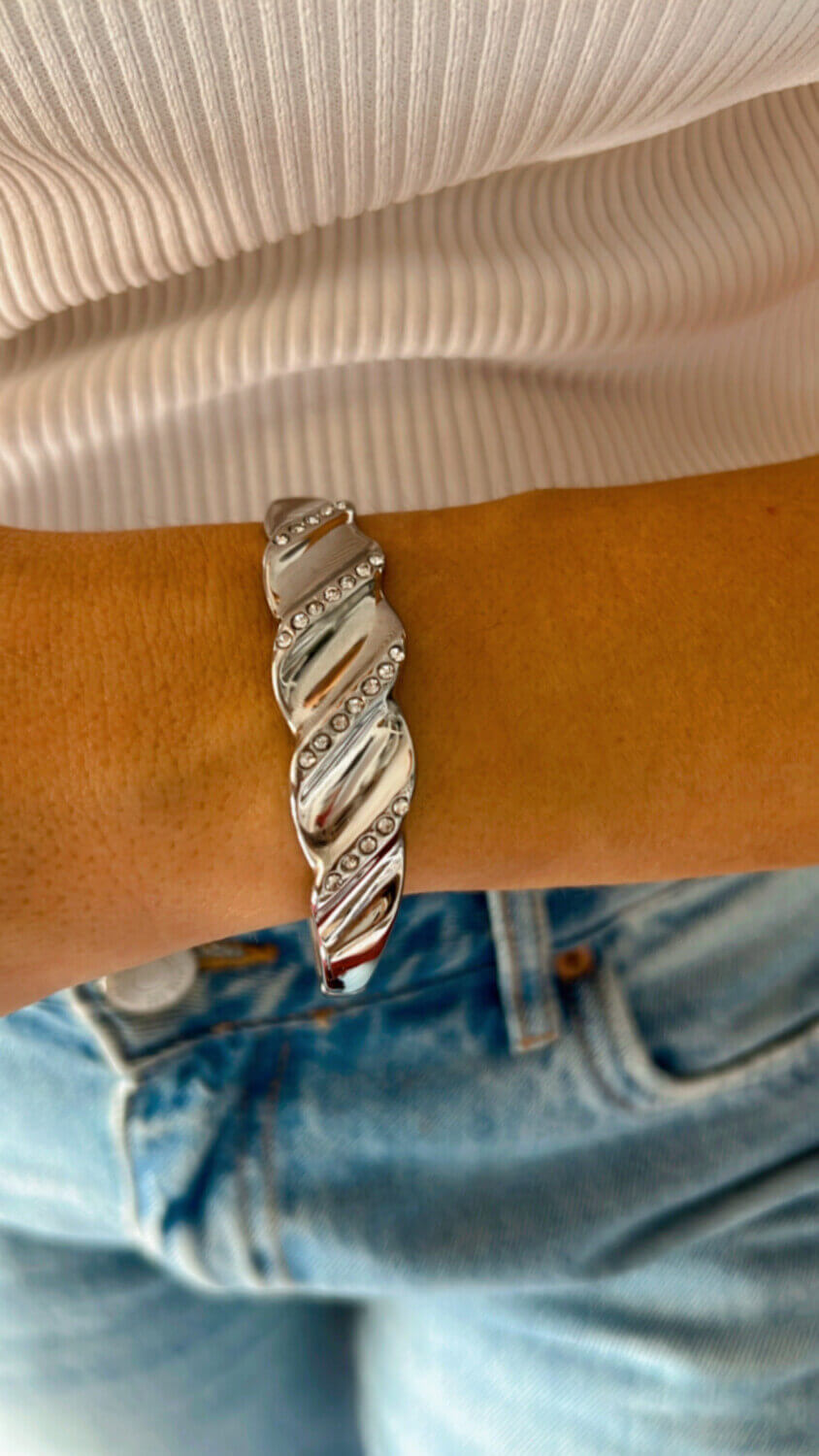 - Ένα μοναδικά εντυπωσιακό ατσάλινο βραχιόλι γεμάτο λευκά ζιργκόν και φινέτσα…