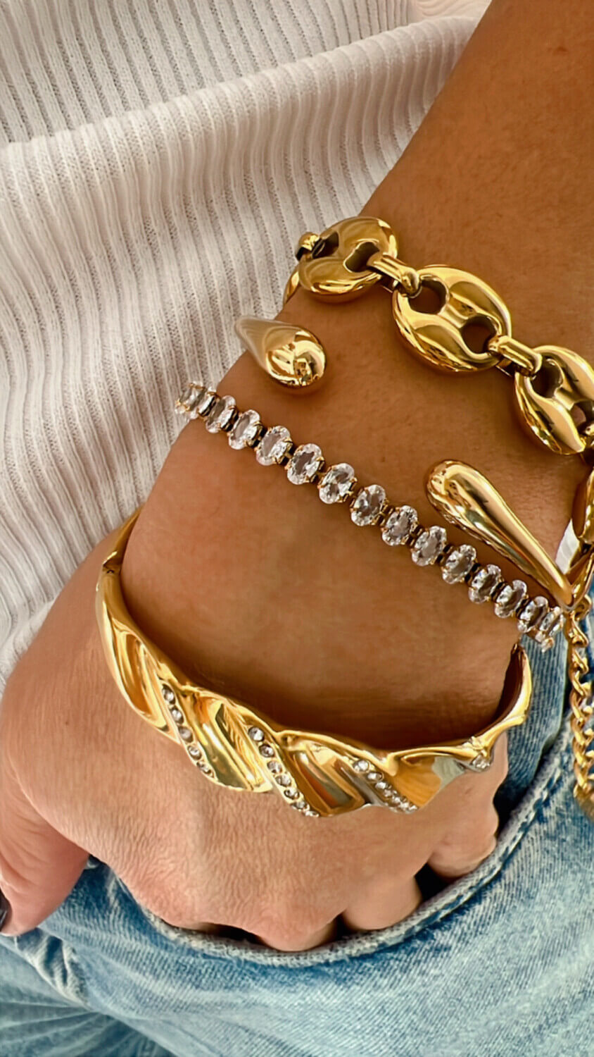 - Ένα μοναδικά εντυπωσιακό ατσάλινο βραχιόλι γεμάτο λευκά ζιργκόν και φινέτσα…